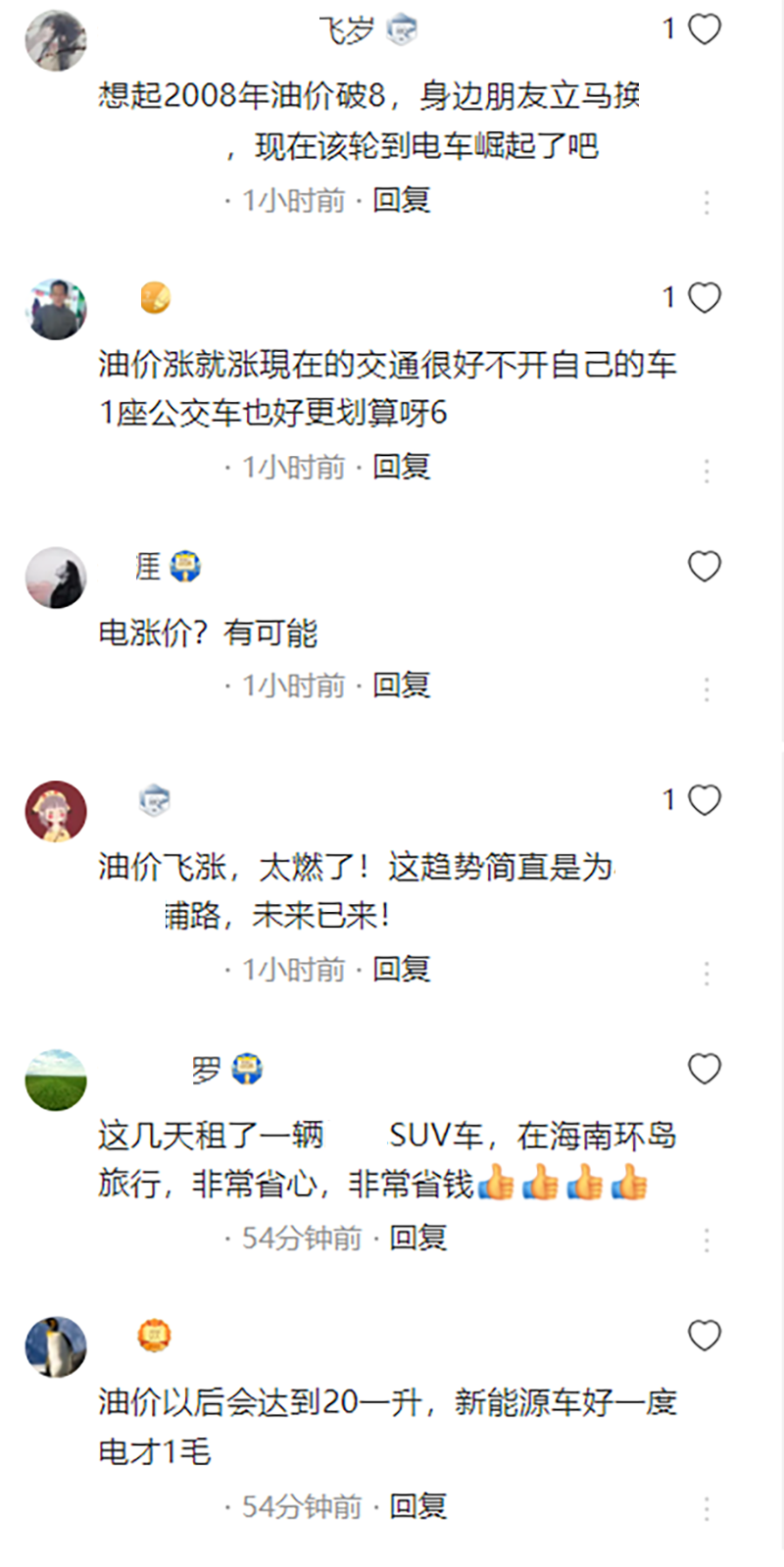 油价上涨是一个关乎国计民生的事情,在这件事情上应当保持理性的态度,可是这一变化却成为了一些电动汽车制造商及其合作的第三方营销公司的营销物料!成为进一步唱衰燃油车而尊己卑人的素材,在相关报道的评论中,可以大量看到相关内容,其中有相当一部分是在新能源汽车阵营里并具体到汽车品牌和产品的评论,里面不仅有新势力品牌,甚至还有一些老牌车企的头部品牌。